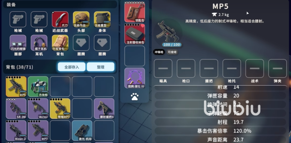 逃離鴨科夫mp5總體來說算是非常好控制,也很強(qiáng)力的腰射武器,在按照小編的推薦搭好配件之后,后坐力會進(jìn)一步減小,而且彈道也更為集中,子彈容量再一擴(kuò)大,可以持續(xù)射擊很久。如果是剛玩的萌新,用這款武器戰(zhàn)斗,會更容易上手。
