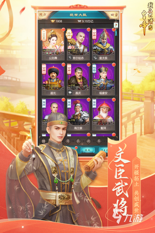 我在大清當(dāng)皇帝是一款以清代歷史為背景的模擬養(yǎng)成類(lèi)手游,在游戲里大家是清朝的一個(gè)皇帝,坐擁后宮佳麗三千,并且還有許多清代的賢臣,大家要避免走晚清統(tǒng)治的老路,招賢納士,培養(yǎng)儲(chǔ)君,成為留名青史的好皇帝。