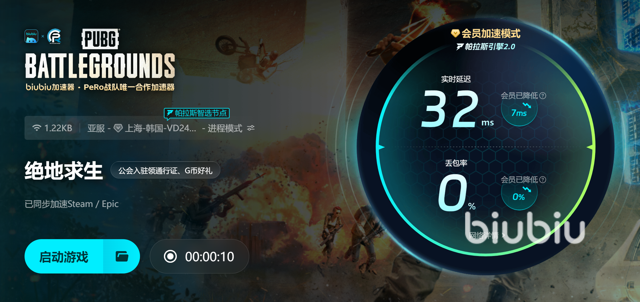 面對pubg的崩潰、閃退、彈出,首先需要檢查一下硬件配置是否達(dá)到游戲的推薦配置要求,如果硬件配置僅僅是勉強(qiáng)達(dá)到要求,建議玩家們降低游戲畫質(zhì)和分辨率進(jìn)行游玩。同時,在游戲時玩家們需要關(guān)閉電腦后臺不用的軟件,為游戲運行騰出穩(wěn)定的硬件性能空間,減少電腦主機(jī)的壓力。玩家們還需要定期更新游戲和體統(tǒng)版本,安裝最新的正式版顯卡驅(qū)動,有時候系統(tǒng)版本過舊和游戲不匹配也會導(dǎo)致故障的發(fā)生,而最新的正式版顯卡驅(qū)動都會對游戲新版本有優(yōu)化,更加穩(wěn)定。網(wǎng)絡(luò)問題是導(dǎo)致PUBG崩潰閃退彈出的另一個主要因素, UBG服務(wù)器多在海外,國內(nèi)玩家直連易出現(xiàn)延遲高、丟包等狀況,致使游戲崩潰閃退。特別是網(wǎng)絡(luò)不穩(wěn)定、高峰期網(wǎng)絡(luò)擁堵時,進(jìn)游戲加載失敗、匹配中閃退或進(jìn)入地圖幾秒后退出等問題頻發(fā)。此時,普通重啟游戲、路由器等方法往往無法根本解決問題。要從根源解決網(wǎng)絡(luò)引發(fā)的閃退,需借助專業(yè)網(wǎng)絡(luò)加速工具,biubiu加速器便是絕佳選擇。
