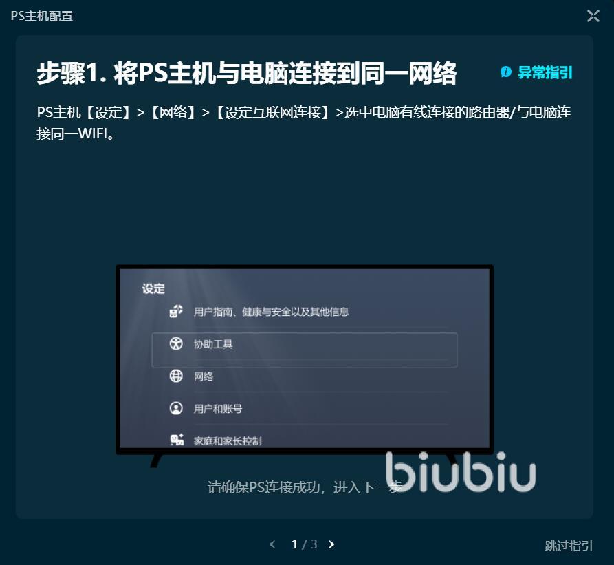 如果你是第一次給ps5加速,那么系統(tǒng)還會(huì)顯示詳細(xì)的步驟指引,你跟著里面的操作去設(shè)置各個(gè)選項(xiàng)后,就能開啟加速服務(wù),要是過程中出現(xiàn)了異常,那么點(diǎn)擊異常指引,就能找到對(duì)應(yīng)的解決辦法,輕松地應(yīng)對(duì)各種難題。