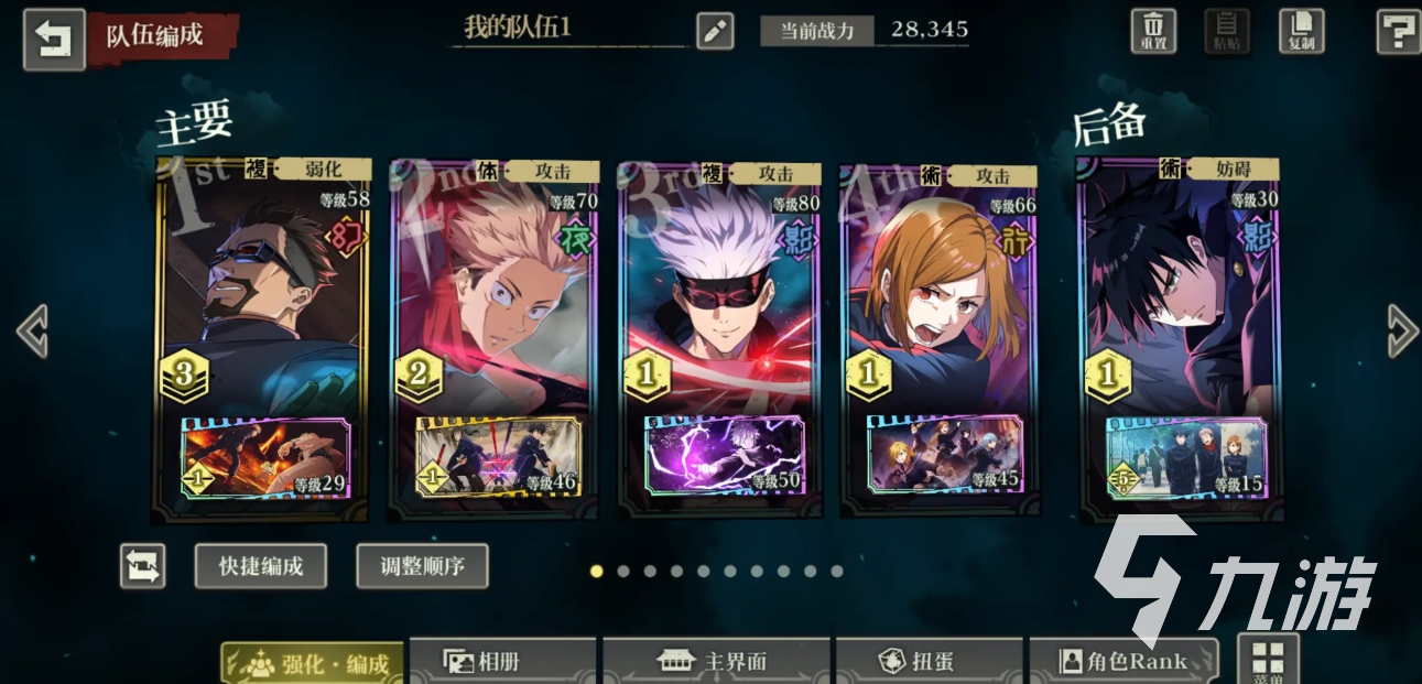 玩家可自由組建隊伍,迎戰(zhàn)強大的咒靈。正如游戲的副標題那樣,里面的角色分為幻、影、夜、形四種屬性,不一個人物也有對應不同時期不同屬性的卡,技能效果上也有區(qū)別。