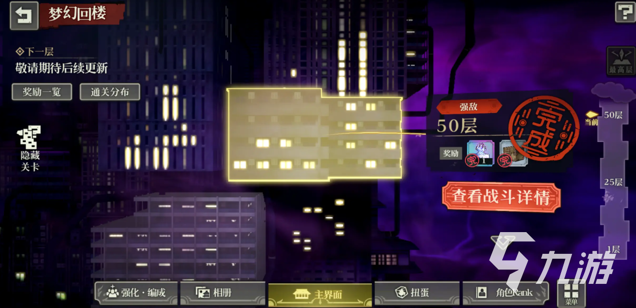 玩法方面除了卡牌養(yǎng)成游戲常見的主線本、boss副本外,還有“領域調查”模式,類似爬塔玩法,玩家挑戰(zhàn)層層險境,與成長后的角色并肩作戰(zhàn)擊破強敵。手游還特別繪制并重繪了“回想殘滓”,有許多動漫中未曾見過的劇情片段。