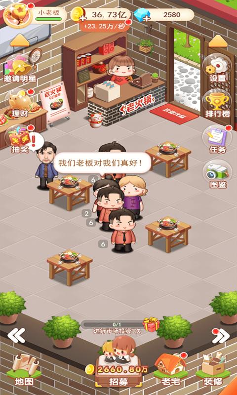 簡(jiǎn)單便捷的操作方法是這款《我要開店暴富》手游的一大特點(diǎn),玩法上沒有那么多復(fù)雜的規(guī)則,入門選擇新手引導(dǎo)很方便的,這里面的店鋪類型有很多,支持玩家們自由選擇,游戲內(nèi)的任務(wù)數(shù)量比較的多,逐步完成能熟悉整個(gè)的游戲玩法,這里的背景音樂有輕松休閑的感覺哦。