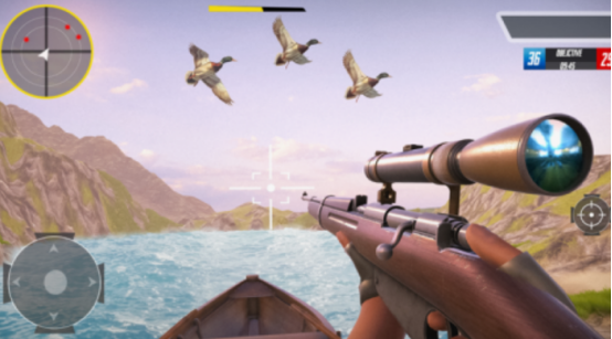 不僅在拿著槍械展開(kāi)射擊的時(shí)候,這款是以fps這種方式,也是在玩法上很與眾不同,加入了狩獵玩法的。因?yàn)樗饕鋼舻木褪?,里面出現(xiàn)的鴨子和瓶子,不僅在射擊的時(shí)候,要仔細(xì)的觀察獵物所在的方向,需要注意,在射擊鴨子的時(shí)候,如果方向不正確的話,鴨子就會(huì)飛走。提供了兩種模式,分別是對(duì)鴨子進(jìn)行狩獵以及對(duì)瓶子展開(kāi)射擊。
