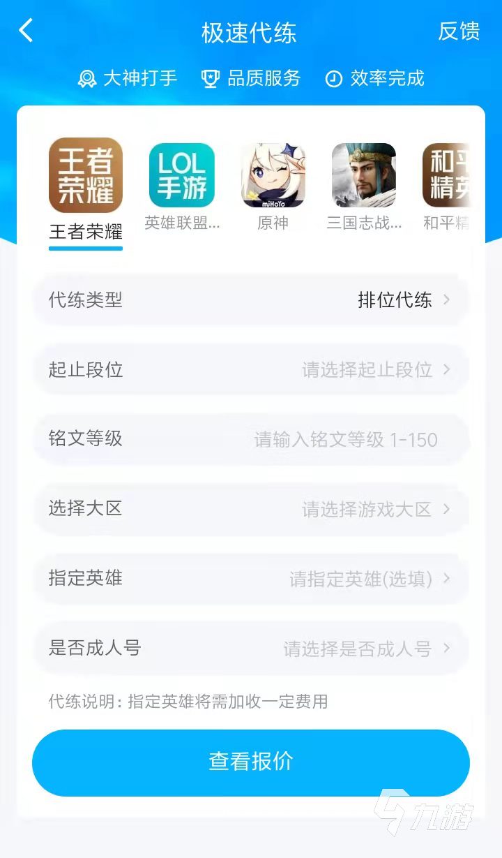 如果自己的游戲時(shí)間不太充足,也不想去購買其他賬號(hào)的話,玩家們還可以直接在交易貓平臺(tái)中尋找代練來幫助自己練號(hào)。目前,在首頁中進(jìn)入到代練的專區(qū)后,點(diǎn)擊極速代練即可發(fā)布自己的需求,隨后等待游戲大神完成接單即可。而玩家本身就是游戲大神的話,還可以在交易貓的新業(yè)務(wù)當(dāng)中直接開通游戲代練來進(jìn)行接單。
