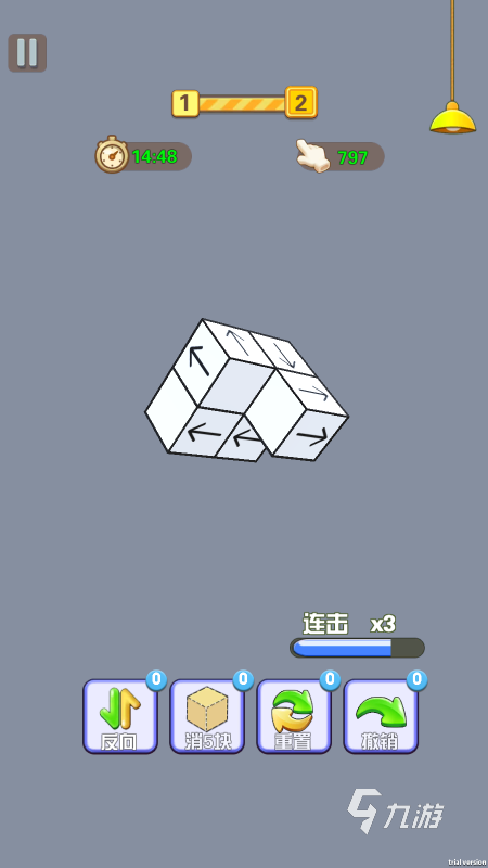 游戲同樣采用的是比較簡單的畫面,每一個關(guān)卡中給出的積木種類是不一樣的,而且箭頭的方向也不一樣,在開始的時候關(guān)卡難度比較小,越往后面的關(guān)卡難度會變得越大,而且出現(xiàn)的方塊數(shù)量也會變得更多。玩家需要不斷的去挑戰(zhàn)更高的難度級別,整個游戲的玩法是比較精彩的,大家需要合理化的進行規(guī)劃。