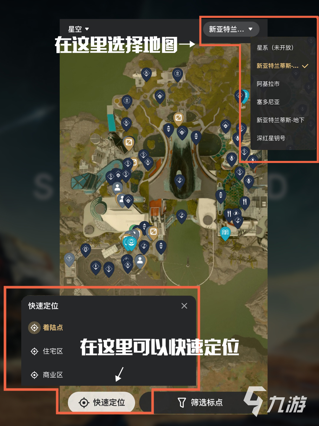 這個方式對于游戲當(dāng)中,不論是面臨了迷路的情況,還是說想要最簡單快速的找到距離最近的一個任務(wù)星球,那么只要通過上述告知大家的方法,進入到大地圖當(dāng)中之后,直接就可以對點位進行篩選了,那么平時也可以對自己想去的分出心神關(guān)注一下,畢竟都是有坐標(biāo)點在的。