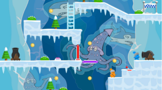 兩只可愛(ài)的貓戰(zhàn)士活靈活現(xiàn)的展現(xiàn)在手機(jī)中,分別是藍(lán)色以及橘黃色,可選擇自己喜歡的一種角色,通過(guò)共同配合完成相應(yīng)的任務(wù)體系,主要講述的就是共同到南極洲去尋找特別古老的金幣,看似任務(wù)特別簡(jiǎn)單,但是在尋找的過(guò)程中會(huì)遇到很多的難題,經(jīng)過(guò)九九八十一難,還要和強(qiáng)大的惡魔斗智斗勇,最終才能收集所有的金幣,順利完成闖關(guān)。在尋找金幣時(shí),遇到任何障礙物或者各種陷阱時(shí),都不要有所畏懼,共同合作,講究的就是彼此的默契感。