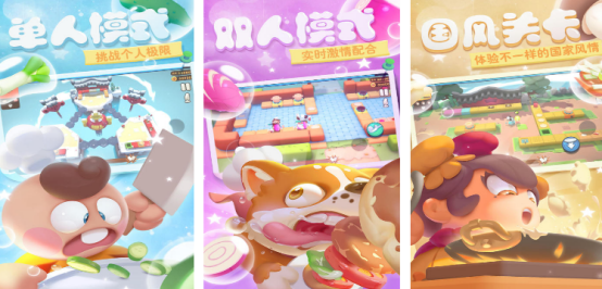 和我們現(xiàn)實(shí)生活中的廚房場(chǎng)景特別相似,其中有各種新鮮的食材以及廚房用具,你和好友通過(guò)聯(lián)機(jī)的方式一起在這里揮灑汗水,并發(fā)揮自己的優(yōu)勢(shì),比較各自的廚藝。面對(duì)各種顧客訂單時(shí),通過(guò)分工合作或者共同制作的方式,在有限的時(shí)間之內(nèi)快速制作完成。盡可能要縮短制作美食的時(shí)間,不要讓顧客久等。