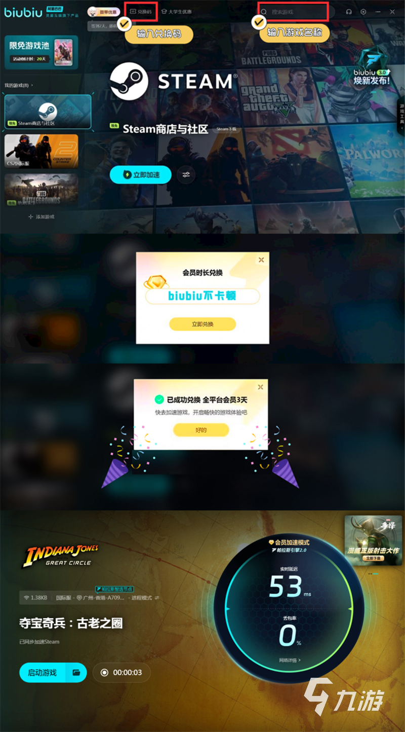總結(jié)這些數(shù)據(jù),就是為了明確一點(diǎn),這款游戲?qū)τ陲@卡要求非常高,運(yùn)行過(guò)程中非常吃顯存,所以畫質(zhì)方面盡量不要調(diào)到最高,采用中等程度畫質(zhì)就能夠比較流暢運(yùn)行。且在中等條件下依然可以展現(xiàn)出非常好的畫面質(zhì)量,當(dāng)然對(duì)于土豪玩家來(lái)說(shuō),直接拉滿才是最佳選項(xiàng)。為了能夠獲得更好的游戲體驗(yàn)感,小編推薦使用biubiu。至于原因,當(dāng)然是效果好操作簡(jiǎn)單,還有提供了兌換碼【biubiu不卡頓】,用于直接得到72小時(shí)加速時(shí)間。新用戶別著急劃走,如果是剛注冊(cè)的新號(hào),不用一開(kāi)始就兌換,因?yàn)樾绿?hào)都有24小時(shí)免費(fèi)加速福利,不需要領(lǐng)打開(kāi)biubiu就能用。