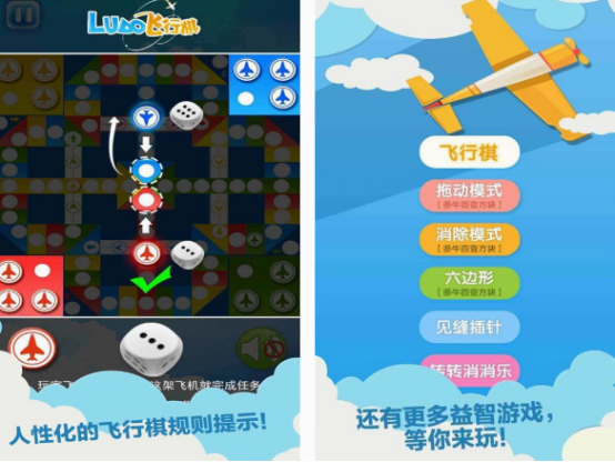 根據(jù)經(jīng)典的飛行棋,為大家所推出的此手游,不僅在畫面上比較精美,操作方法,也是比較簡潔的,你將在此游戲當(dāng)中,體驗(yàn)童年時,與好友共同玩飛行棋所帶來的趣味體驗(yàn)。高度還原了里面的玩法,在人性化的規(guī)則提示當(dāng)中,需要不斷的投擲骰子,通過顯示的點(diǎn)數(shù)以后來展開挑戰(zhàn),含有超多的益智游戲,大家都可以免費(fèi)體驗(yàn)。
