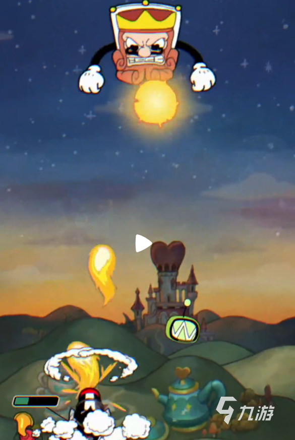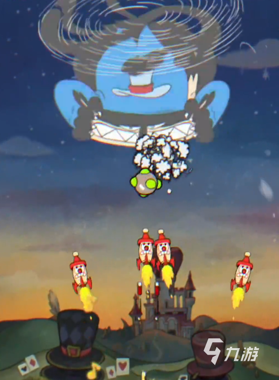奸笑貓有3個(gè)技能,第一個(gè)技能是向著扇形區(qū)域發(fā)射彈幕,第二個(gè)技能就是它自己會(huì)化身為球來高速?zèng)_撞,我們需要進(jìn)行躲避,它的第三個(gè)技能會(huì)丟出軌跡不規(guī)則的子彈,這個(gè)是比較考驗(yàn)我們走位的。