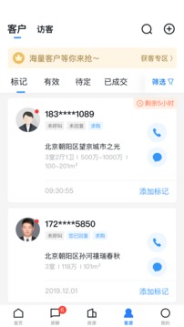 2)天下潛客:基于對(duì)房天下近億用戶海量找房行為的智能分析,為經(jīng)紀(jì)人精準(zhǔn)匹配并推送符合其需求的客戶。精準(zhǔn)、智能地整合房天下房源、客源信息,提高經(jīng)紀(jì)人與購(gòu)房者的溝通效率,有效降低獲客成本。