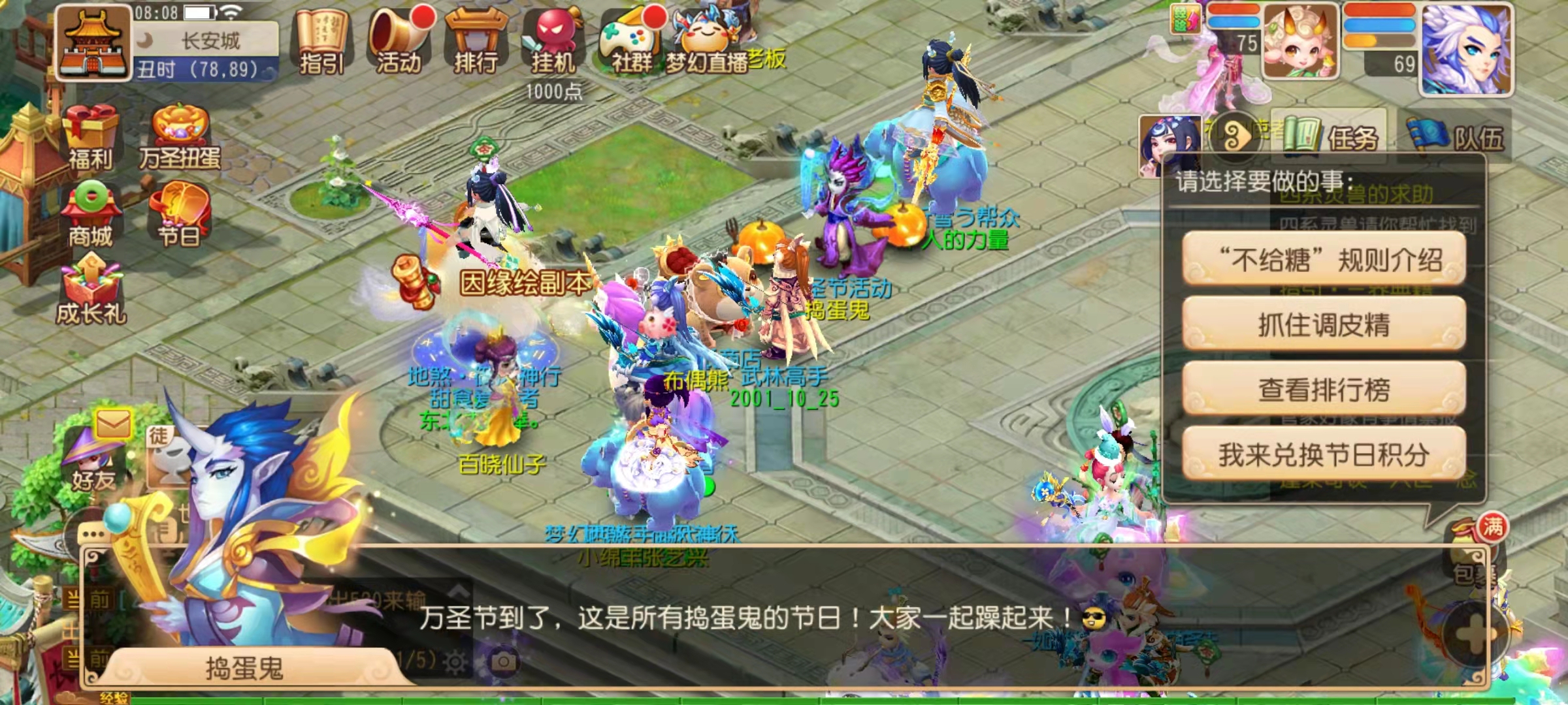 抓住調(diào)皮精是夢幻西游手游萬圣節(jié)活動期間的單人趣味玩法,抓住調(diào)皮精一共有三關(guān)需要玩家逐步解鎖,第一關(guān)搗蛋小鬼玩家的得分達到1000即可開啟調(diào)皮將關(guān)卡,調(diào)皮將關(guān)卡積分達到2000可開啟最后的惡作劇大王關(guān)卡。