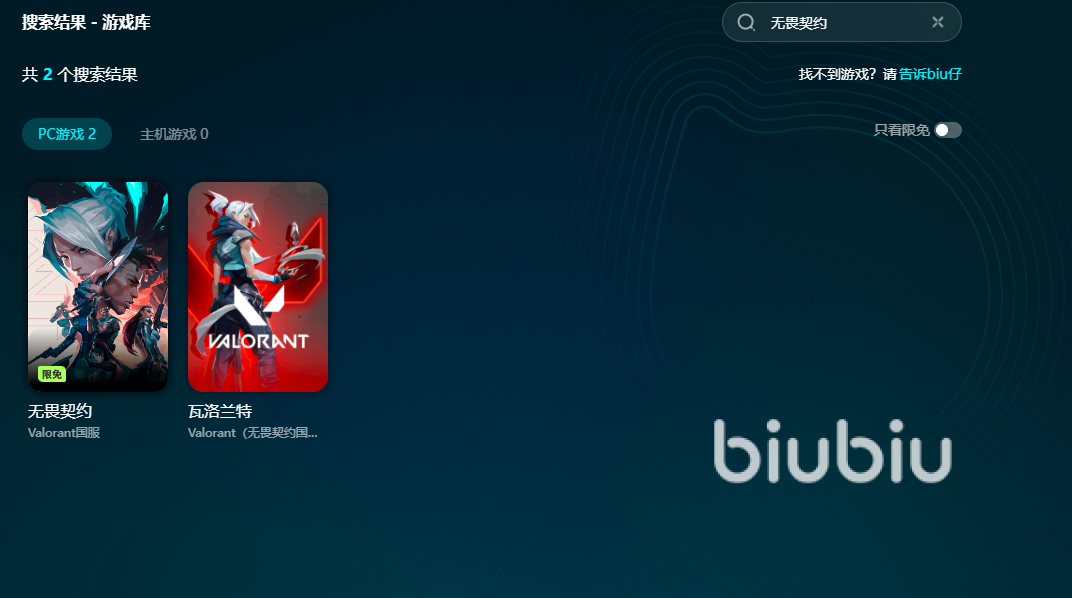 具體使用方法也很簡單,只需要下載登錄頁面,注冊好之后直接在搜索框里搜索大家需要加速的無畏契約這款游戲即可正式啟動,后續(xù)停止游戲的加速也是在這里還可以把大家常玩的游戲添加到自己的游戲庫當(dāng)中去,這樣以后給游戲加速就方便多了,不需要再去搜索,也是大家可以考慮長期使用的對象。