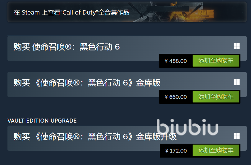 此外,《使命召喚21:黑色行動(dòng)6》的發(fā)售已經(jīng)在Steam國(guó)區(qū)開啟,標(biāo)準(zhǔn)版價(jià)格為488元,金庫(kù)版價(jià)格為660元,并且支持簡(jiǎn)體中文,并加入微軟的Game Pass訂閱服務(wù)。