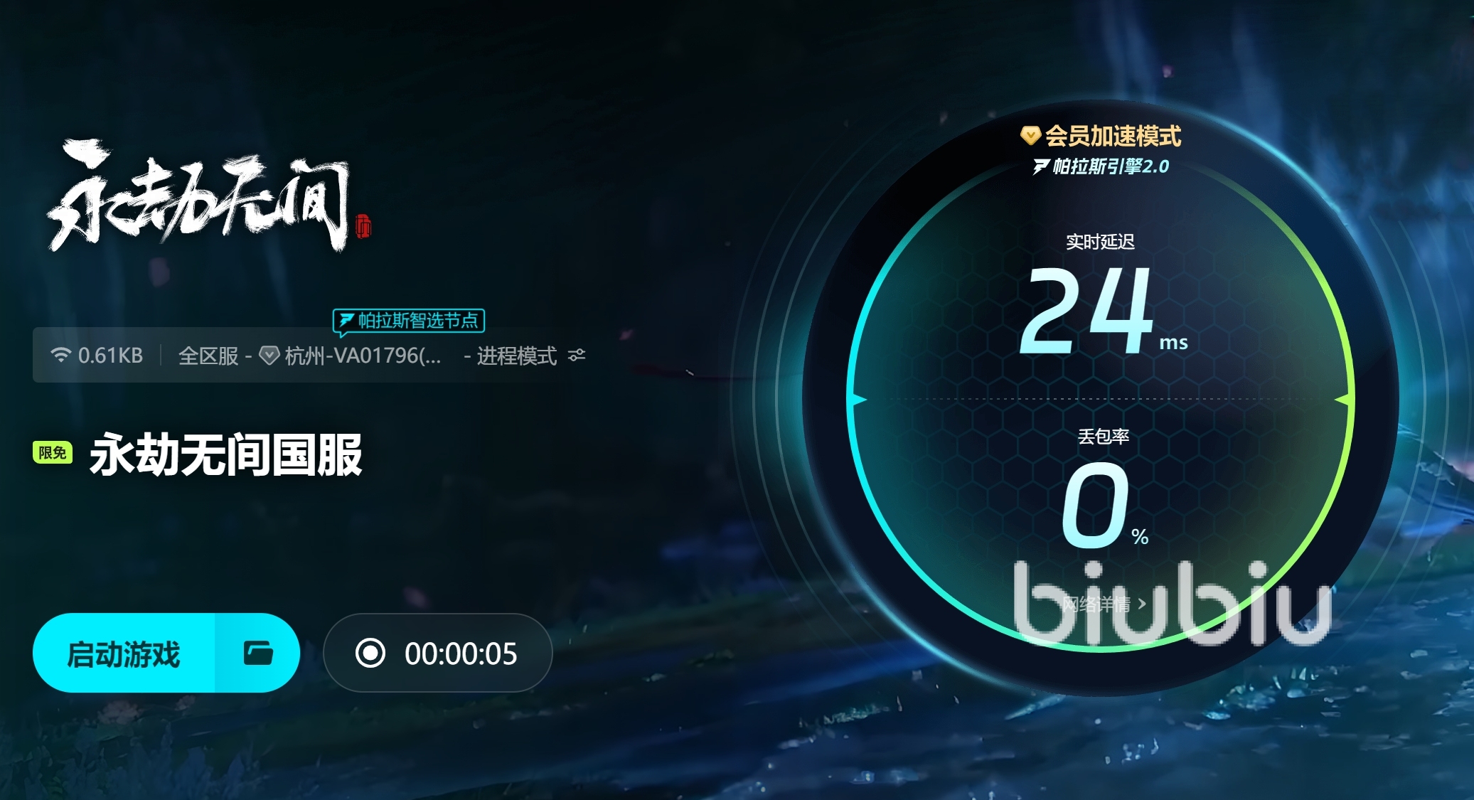 永劫無間的地圖信息多且復(fù)雜,每時(shí)每刻要上傳全地圖所有人的操作信息,經(jīng)服務(wù)器運(yùn)算后,再將狀態(tài)發(fā)放至各個(gè)對(duì)應(yīng)的客戶端……總之?dāng)?shù)據(jù)傳輸量巨大。假如網(wǎng)絡(luò)節(jié)點(diǎn)很少、路徑規(guī)劃不合理回路多的話,就很容易造成高延遲甚至掉線,尤其在用網(wǎng)高峰時(shí)段。為此,小編試用了多款加速軟件,終于挖到一款寶藏加速器——biubiu。