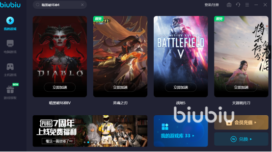 現(xiàn)在的官方特意推出了免費(fèi)贈(zèng)送加速時(shí)長(zhǎng)這樣的福利,如果想要了解一下這款加速器的實(shí)力,新用戶只需注冊(cè)登錄就可享受官方贈(zèng)送的24小時(shí)加速時(shí)長(zhǎng),另外三天的加速時(shí)長(zhǎng)屬于兌換碼的福利,新老用戶都可使用,需要玩家輸入兌換碼【biubiu不卡頓】即可免費(fèi)享受游戲加速三天。