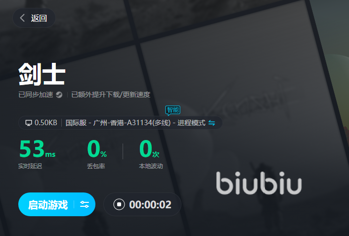 Biubiu加速器運行的節(jié)點全部都是專屬通道,即便是在高峰期的時候,也無需等待無需排隊查,點擊連接響應(yīng)速度極快,真實反饋出游戲內(nèi)的延遲,就算是還沒有啟動游戲,乃至說還沒下載你想要加速的游戲,也能先匹配出通道來讓你看到加速后的延遲效果如何,而劍士作為海外游戲延遲數(shù)據(jù)能維持到70ms已經(jīng)算是特別優(yōu)秀了,可在biubiu的幫助之下,只要稍微網(wǎng)絡(luò)好一些的同學(xué),這個延遲數(shù)據(jù)還是能大幅下降的。
