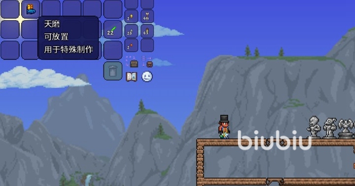 我們?cè)谄u進(jìn)行探索時(shí)會(huì)發(fā)現(xiàn)一些藍(lán)色的箱子天域箱,而在天域箱中我們就有幾率可以獲得天磨這個(gè)特殊的制作站。而在太空上的蒸汽朋克人NPC這里我們也是可以使用10金幣來(lái)購(gòu)買(mǎi)到天磨的。將天磨放置在快速工具欄中并且對(duì)著地面物塊或者是平臺(tái)上使用就可以進(jìn)行放置。