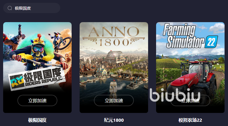 小編為大家推薦它,主要就是它能為大家提供便捷的使用方式,隨開隨用,不想用的時候,點擊停止加速就可以,除了能為該游戲進行加速以外,還有大量的PC以及主機游戲用戶也能去選擇,涵蓋的區(qū)服種類也是十分豐富,市面上大部分熱門游戲,小伙伴們都能在這里見到,此外小編也是把它的官方下載渠道留在了上面,點擊就能去快速的安裝,在注冊登陸以后,直接去搜索極限國度,就能其開啟加速服務(wù)了。