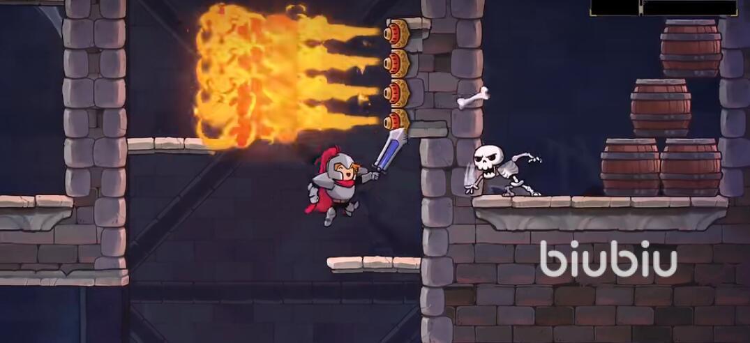 接下來(lái)還會(huì)在堡壘當(dāng)中面對(duì)石柱陷阱,每一個(gè)柱子上都有著一個(gè)噴火的裝置,玩家們依然需要利用好間隙進(jìn)行跳躍。不過(guò)在這里,建議大家跳躍的幅度變小一些,因?yàn)槭g的距離很近,跳躍太高的話不好掌控下落的方向,反而會(huì)提高玩家們觸發(fā)陷阱的概率。同時(shí)最后一個(gè)石柱上的尖刺陷阱,各位可以使用連續(xù)跳來(lái)突破。