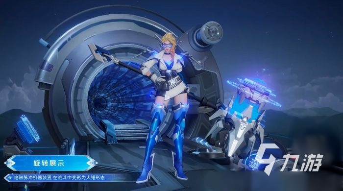 最后大招改變最大,完美發(fā)揮了皮膚特色,噴氣大錘發(fā)射火光造成范圍傷害,高速旋轉(zhuǎn)黃藍(lán)相間算是皮膚最出彩的敵方吧。