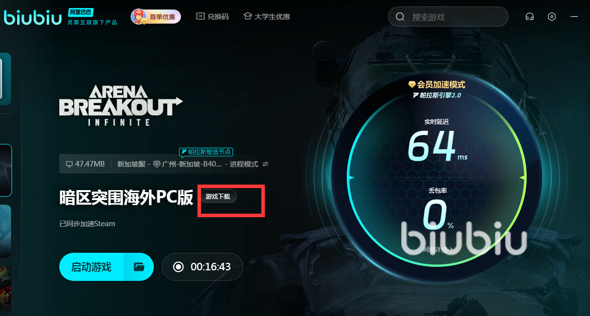 由于海外版的服務(wù)器設(shè)定在海外,如果網(wǎng)絡(luò)不好的話,我們甚至無法進(jìn)入到它的官網(wǎng),更別說下載可能會(huì)遇到的速度過慢或者下載失敗的問題了。想要解決這個(gè)問題也是很簡單的,我們只需要使用了biubiu的加速器上,找到這款游戲進(jìn)行提速與穩(wěn)固連接,接著就可以在加速界面看到“游戲下載”四個(gè)字了,點(diǎn)擊進(jìn)入以后就可以正常的下載或者瀏覽相關(guān)的內(nèi)容了。