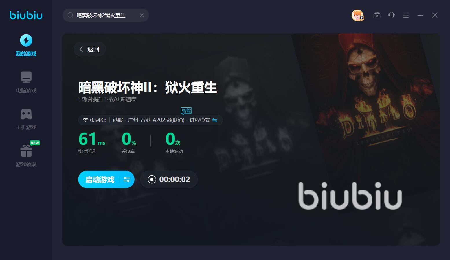 暗黑2中雖然沒(méi)添加什么新內(nèi)容,但高清的畫(huà)面很值得大家去試一試,在下載游戲的時(shí)候,大家可以開(kāi)啟這個(gè)應(yīng)用,用更快的速度去完成下載,后續(xù)要是遇到了大版本的更新,那么也可以用biubiu加速器去加快更新速度,讓自己更快地體驗(yàn)到新版本。