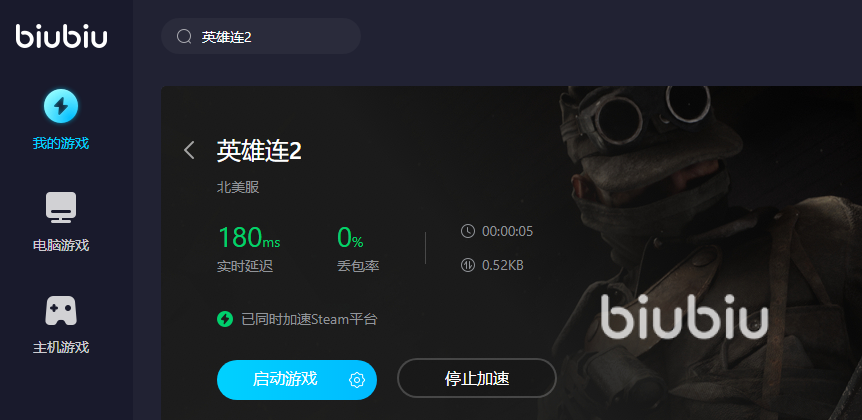 對于喜歡玩主機(jī)游戲的朋友來說,肯定不只會玩一款游戲。還好biubiu支持的游戲類型其實(shí)非常多除了主機(jī)游戲之外還支持各種電腦游戲。所以你能夠選擇加速的游戲其實(shí)很多,并且它的操作過程也非常簡單,如果你想要為某一個游戲加速的話,就直接點(diǎn)開,然后進(jìn)行加速即可,如果想要玩其他游戲的話,也可以直接點(diǎn)擊停止,然后關(guān)掉游戲之后再在游戲庫里面找到其他游戲也能快速上線。畢竟英雄連2是一款即時游戲,很多朋友都會玩一兩把之后,然后下線去玩其他游戲。