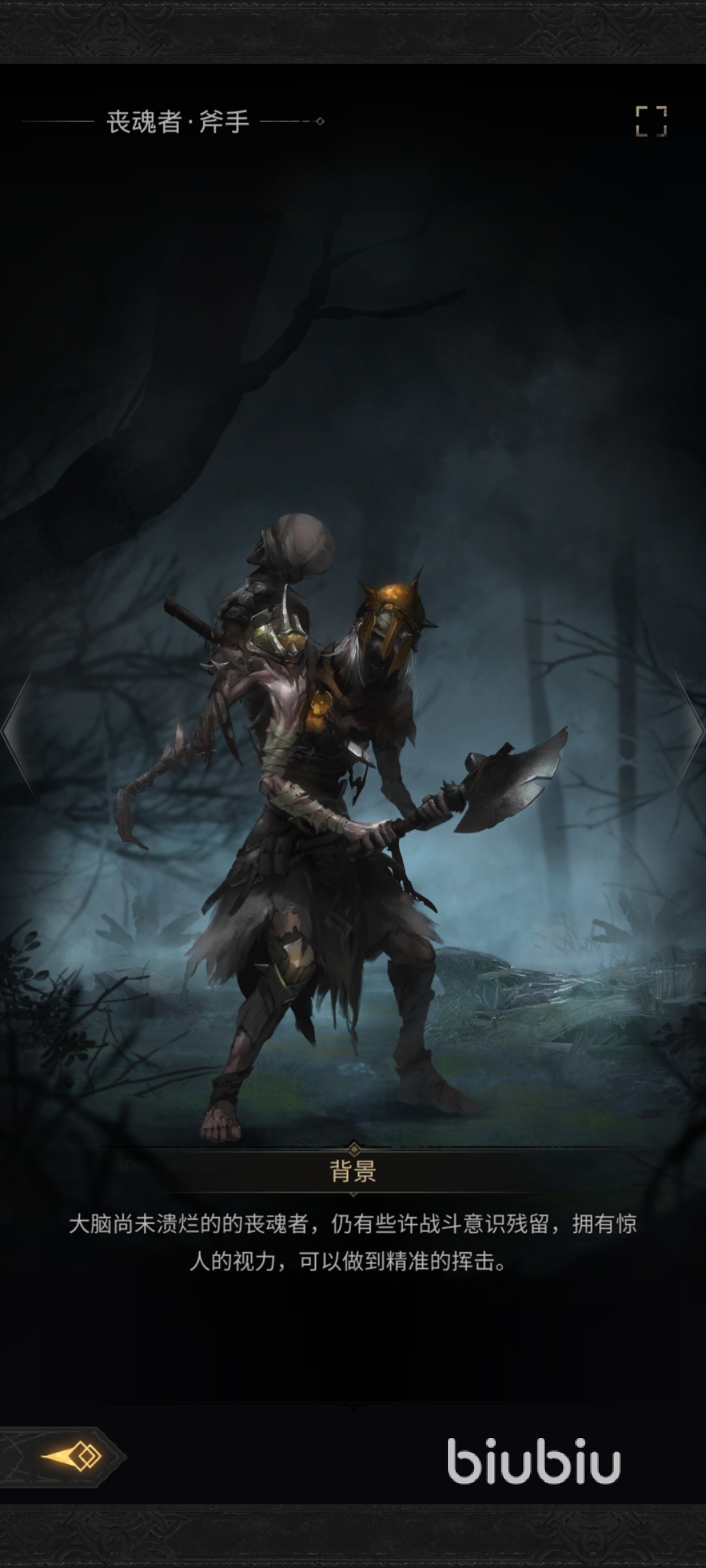 喪魂者斧手是大腦尚未潰爛的喪魂者之一,仍然有清晰的視力和一定的戰(zhàn)斗意識,不過作為對于正常完成游戲流程的玩家來說,喪魂者斧手作為基礎(chǔ)怪物單個出現(xiàn)的時候并不會對玩家們造成太大的擊殺難度!