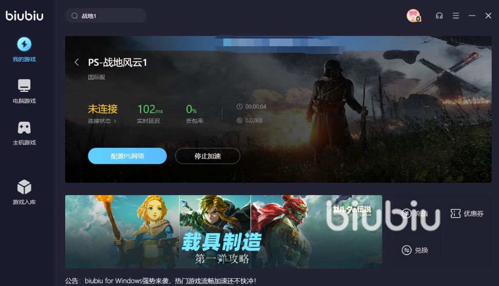 這個(gè)系列的游戲基本上地圖都是非常宏大的,而且還需要跟隊(duì)友聯(lián)機(jī)合作,這樣才能有一個(gè)正確的合作策略。不過如果這個(gè)期間如果網(wǎng)絡(luò)出現(xiàn)了波動(dòng)或者是延遲的情況,那別說是組隊(duì)了,登錄都成了問題,地圖也刷新不出來。在游戲之前還是啟動(dòng)biubiu加速器可能會(huì)緩解很多,專業(yè)的軟件給你提供精湛的技術(shù),第一次使用的用戶還能得到官方給予的72小時(shí)免費(fèi)加速權(quán)利,可以說非常的誘人了。