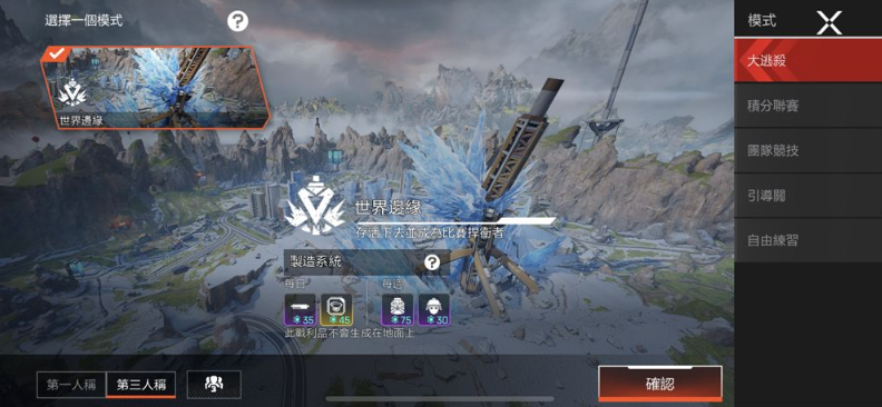 除了br模式外,游戲還有積分聯(lián)賽,團(tuán)隊(duì)競技,新手引導(dǎo)以及自由練習(xí)幾個(gè)模式,玩家們都可以嘗試一下。