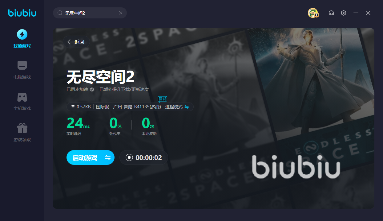 無盡空間2盡管玩法豐富,但目前仍舊木有國服。若是想步入新的浩瀚宇宙空間,就需要使用biubiu。通過提速后,方能搭乘上宇宙飛船,勇敢航行至新的宇宙位面開始你的生活。新用戶的話,可領取24H的免費加速,率先體驗宇宙之旅。此外新老用戶都能輸入【biubiu不卡頓】,額外獲取三天免費加速。要想在宇宙中扎根的話,首要任務便是解決卡頓問題。有了加速器后,就能讓你有了立足之本,通過合理加速,便可無懼各種宇宙危機!