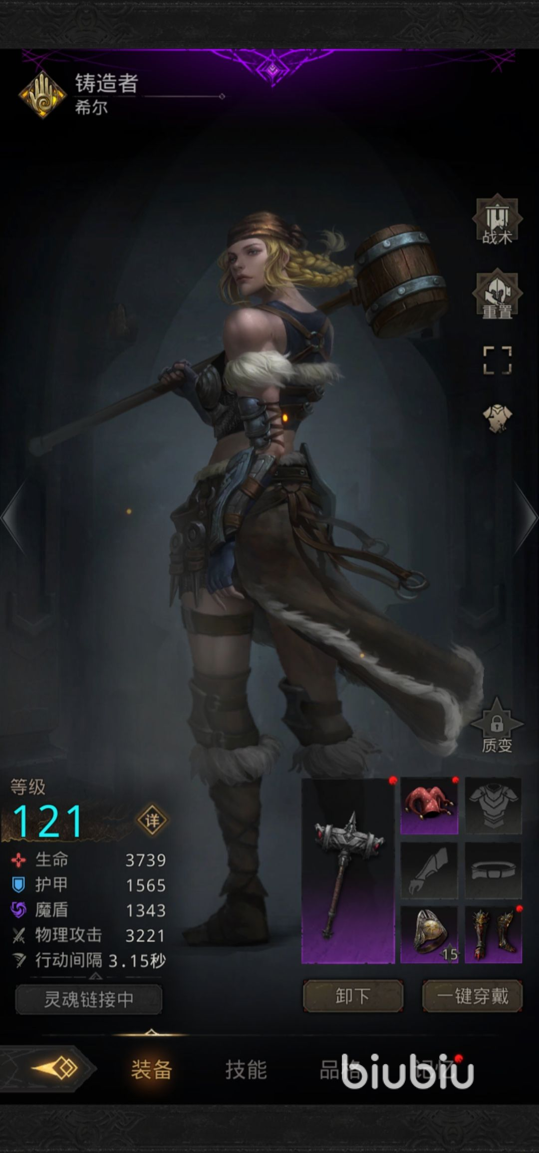 1、鑄造者這個英雄可以提供斬擊抗性,戰(zhàn)吼恐懼減傷,而且還能看臉使用眩暈來打斷boss輸出。鑄造者在這里的作用就是個工具人,即使在沒有裝備的情況下也是可以上場使用的,畢竟作為掛件只要不死就夠了。