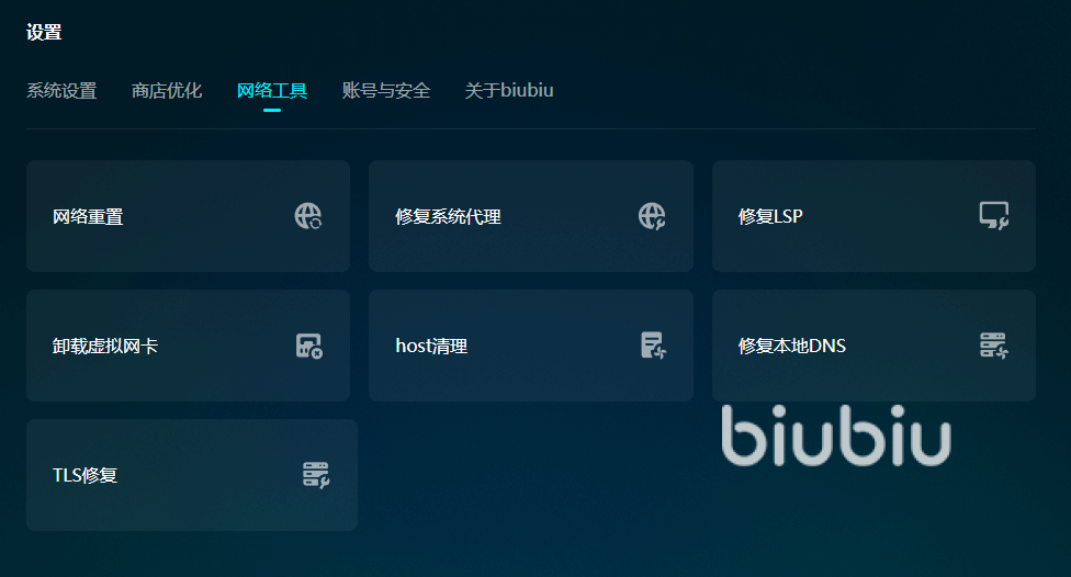 biubiu工具箱也能協(xié)助大家改善加載緩慢的情況,它既能修復(fù)本地DNS,又能解決加速無(wú)效這些問(wèn)題,每個(gè)工具都是點(diǎn)擊即可馬上使用,操作簡(jiǎn)單又能立馬見效,一點(diǎn)都不耽誤時(shí)間。電腦里安裝了biubiu軟件就猶如擁有一個(gè)全能的游戲助手。