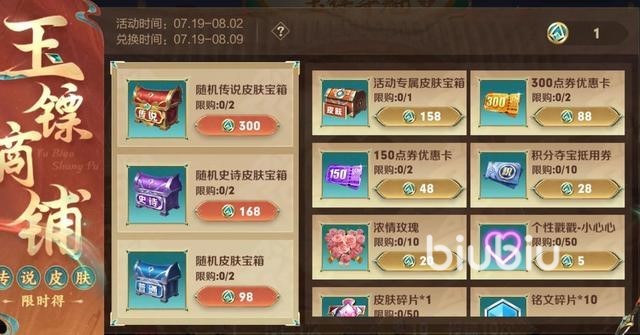 1、 玉鏢幣可在商鋪兌換稀有獎(jiǎng)勵(lì),300玉鏢幣可兌換隨機(jī)傳說(shuō)皮膚寶箱。