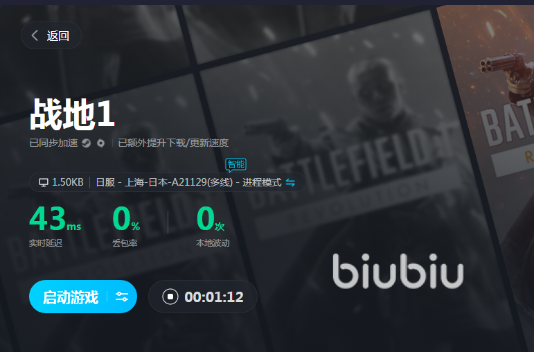 關(guān)于戰(zhàn)地1錯(cuò)誤代碼1的原因以及好用的加速器就介紹到這里了,大家在使用biubiu的時(shí)候不光可以解決這個(gè)問題,還可以讓玩家享受到低延時(shí),高幀率的游戲效果,盡情的體驗(yàn)各種玩法。此時(shí)各位可以安心的去玩游戲了,有這類故障它也會(huì)立馬解決,讓用戶享受自己的休閑游戲時(shí)間。