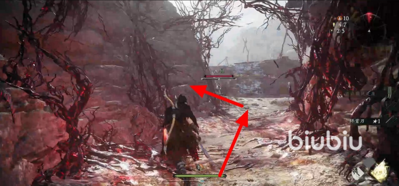 繼續(xù)往前走能夠看到一個(gè)祭壇,擊殺周圍的黃巾軍之后可以立起旌旗,沿著道路繼續(xù)走,此時(shí)敵人由黃巾軍變?yōu)榱诵惺呷?。這里需要注意一種會(huì)斷的橋,此時(shí)一定要跳著走。到一個(gè)遍地是尸體的地方時(shí),就要準(zhǔn)備開始打精英怪了,在和精英怪的戰(zhàn)斗中必須熟練利用格擋,同樣在放大招時(shí)會(huì)有紅光出現(xiàn)可以及時(shí)躲避。