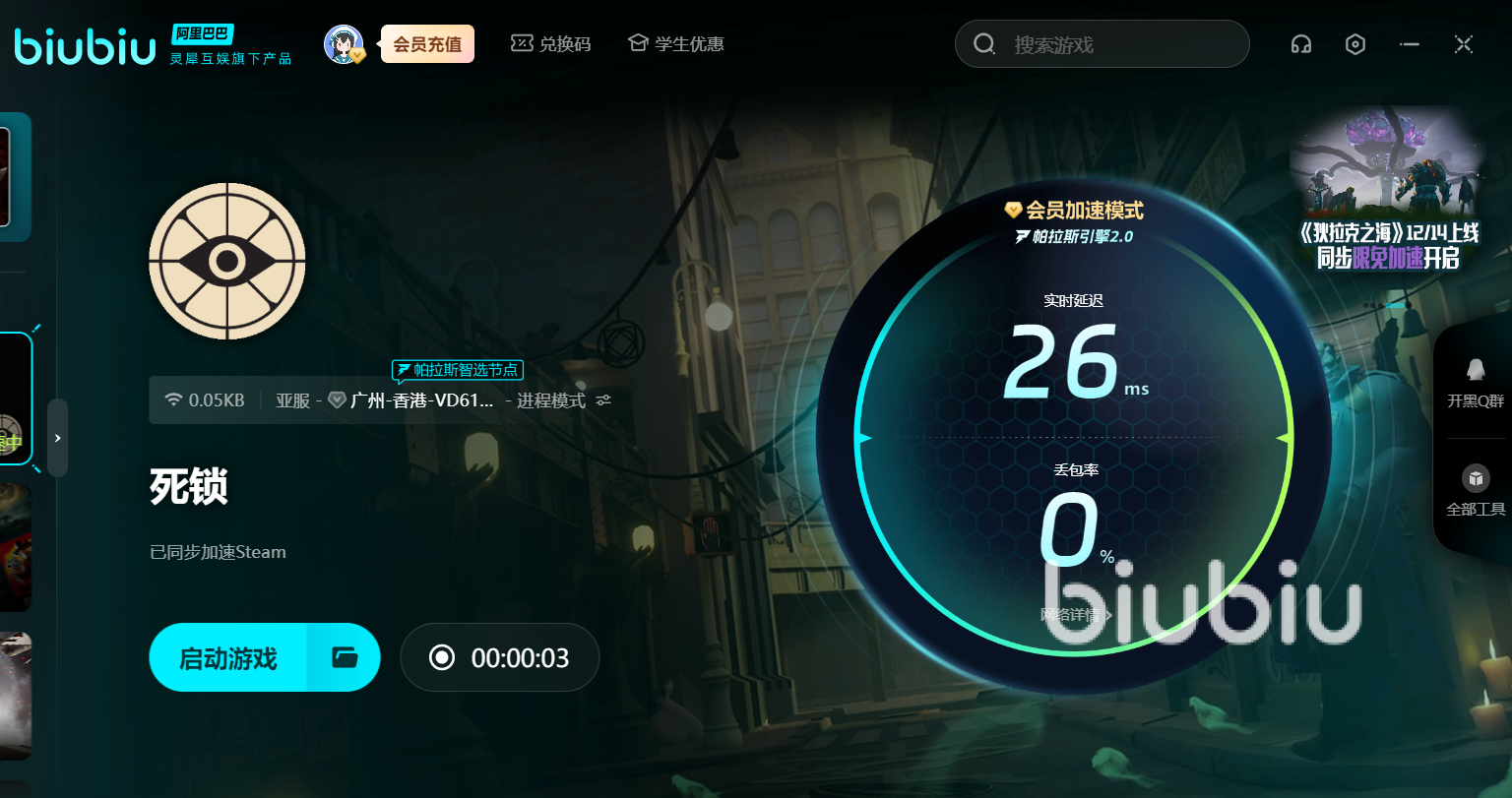 特色6V6團(tuán)隊FPS+moba玩法模式的《死鎖》中,你不僅需要跑圖精準(zhǔn)射擊,還要選角與隊友緊密配合,運用策略占領(lǐng)關(guān)鍵位置。頻繁的聯(lián)網(wǎng)和在線加載,要求玩家擁有較佳的網(wǎng)絡(luò)質(zhì)量。這時,biubiu加速器便能幫助玩家輕松解決網(wǎng)絡(luò)問題。它智能優(yōu)化網(wǎng)絡(luò)路徑,為玩家提供暢通無阻的專用通道,確保游戲體驗更加流暢。