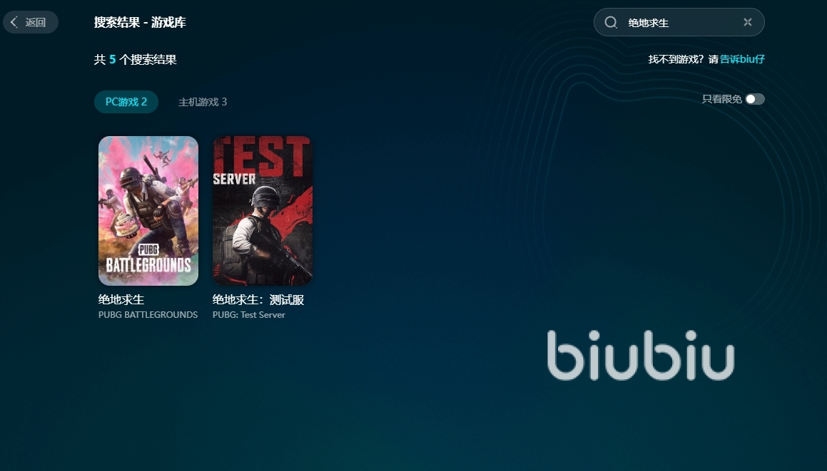 使用的時候,大家只需去打開biubiu并搜索《絕地求生》,這個時候就會發(fā)現(xiàn),其所支持的版本很是全面,不僅僅是PC,還包含了主機(jī)等多種,讓大家可去根據(jù)自身的體驗(yàn)情況來進(jìn)行選擇,當(dāng)然了一鍵操作就可以快速的開啟加速,不用擔(dān)心有廣告或者是復(fù)雜操作等現(xiàn)象的發(fā)生,這點(diǎn)還是非常不錯的,讓小伙伴們不用顧慮會在加速過程方面浪費(fèi)太多時間。
