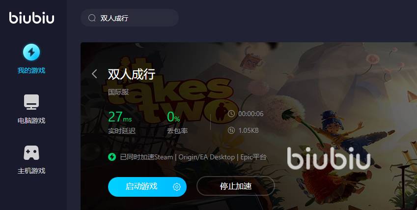 如果網(wǎng)絡(luò)卡的話,也會(huì)讓人感到非常崩潰,特別是當(dāng)你要拿到一個(gè)道具的時(shí)候,突然網(wǎng)絡(luò)一卡你就撿不到了,甚至還會(huì)掉線,這樣就會(huì)讓你前功盡棄,本來玩的好好的關(guān)卡,就需要重新來過。另外,你還需要跟朋友一起聯(lián)機(jī)玩游戲。這時(shí)候你們的動(dòng)作也要一致,還有語言也要及時(shí)溝通好才能夠同時(shí)完成解謎,這時(shí)只需要運(yùn)行biubiu,即可迅速連接海外網(wǎng)絡(luò),讓你流暢地運(yùn)行雙人成行。這樣你就能很好地操作游戲里的人物,可以盡量減少游戲失誤。大大地提升游戲勝率,另外也能及時(shí)跟匹配到的隊(duì)友溝通好,這樣只有配合到位了才能快速過關(guān)。
