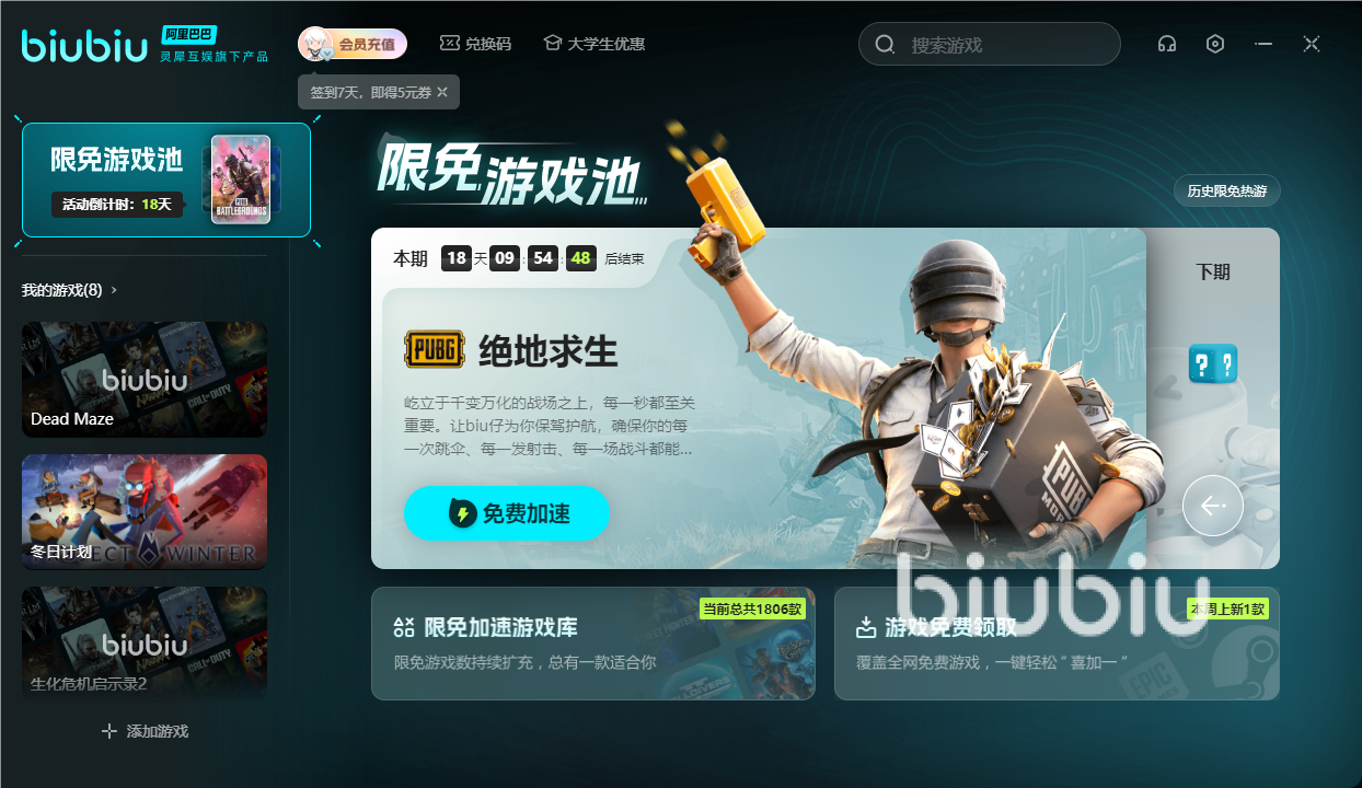 許多熱門的游戲在平臺里面都會提供免費的加速服務(wù),如果剛好遇到你正在玩的那款游戲沒有免費的加速服務(wù),而你又是沒體驗過biubiu加速器的新注冊用戶,在完成平臺內(nèi)加速器的一系列認(rèn)證行為之后,可以領(lǐng)取平臺提供的免費24小時加速時長,為你保駕護(hù)航。