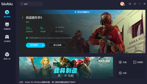 此時,biubiu除了給gtav游戲進(jìn)行網(wǎng)絡(luò)提升之外,還可以為對應(yīng)的游戲平臺提供加速,從而修復(fù)各項功能,更是可以加快游戲的下載更新速度,這對于gta5這樣的服務(wù)型游戲而言是非常實用的。
