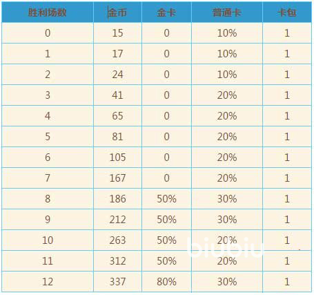 2、游戲金幣:競(jìng)技場(chǎng)勝利的場(chǎng)次越多,能夠獲得金幣越多。1包卡牌價(jià)值=100金幣。達(dá)到12連勝最多可以獲得500金幣+1卡包。