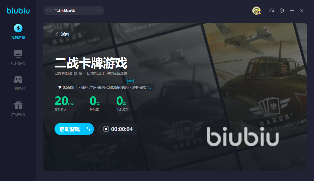 二戰(zhàn)卡牌游戲雖然好玩,不過卻暫且沒有國服。只有用了biubiu之后,方可優(yōu)化網(wǎng)絡,讓你進入真正的戰(zhàn)爭年代。若是初次體驗的話,新人可領取24H的免費加速;此外新老玩家還能使用【biubiu不卡頓】,便可額外領取三天免費加速。進入主頁后太卡頓的話,可能連最基礎的卡牌搭配都無法做到。使用加速器后,即可輕松組建出強大的卡牌陣容。讓你有更高的勝率拿下比賽,如果延遲高的話,就會影響你的出牌速度。有了加速器后,方可降低延遲,每次都可操作自如。