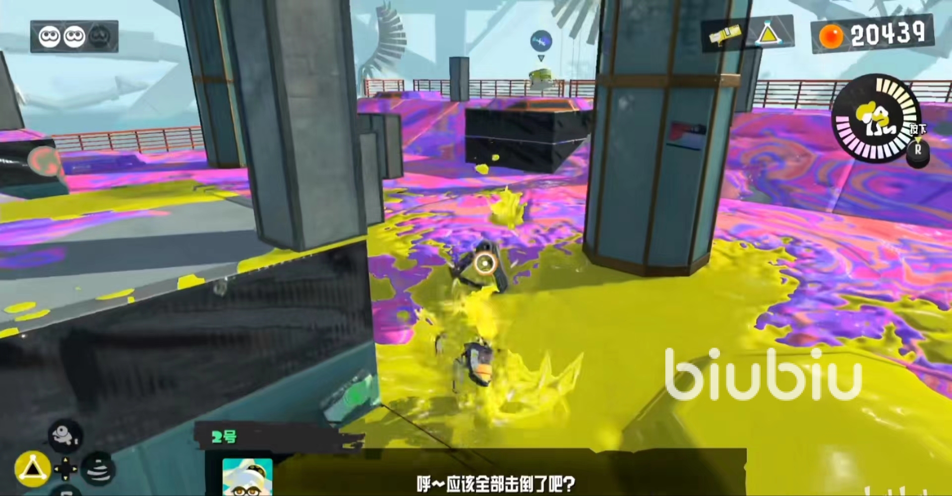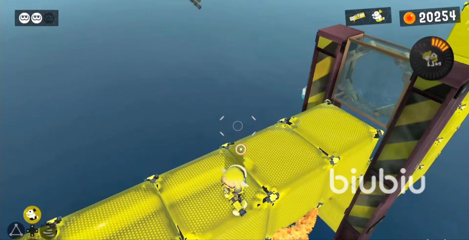 忍耐任務(wù)總圖來說非常簡單,尤其是前半段可以說是毫無難度,直到玩家在魷魚形態(tài)下爬上頂端,才會有一些難度。在玩家爬上頂端后,需要在柱子上帶著等待它移動,同時(shí)把那面柱子涂滿墨汁,之后把蘑菇頭推下去。
