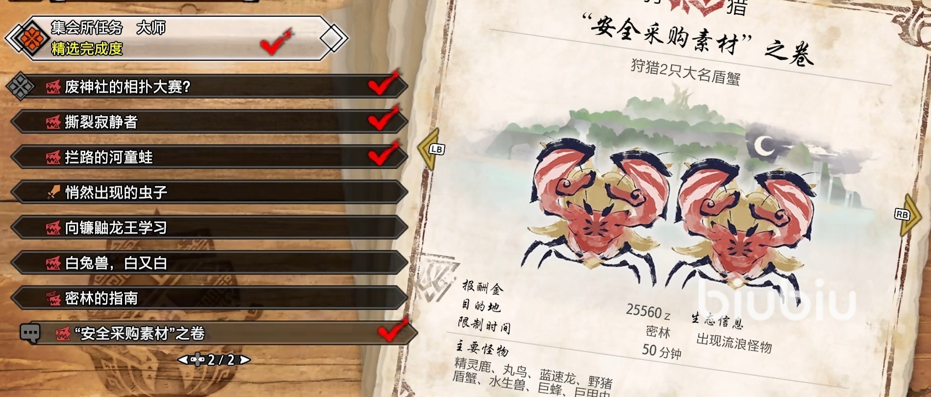 然后是在選擇狩獵任務(wù)的時(shí)候,要求的條件越多越嚴(yán)格,那么最后能夠獲取的點(diǎn)數(shù)也就越多。如果能夠觸發(fā)到帶有附加特殊條件的任務(wù),在通關(guān)之后收獲將會(huì)非常豐厚。