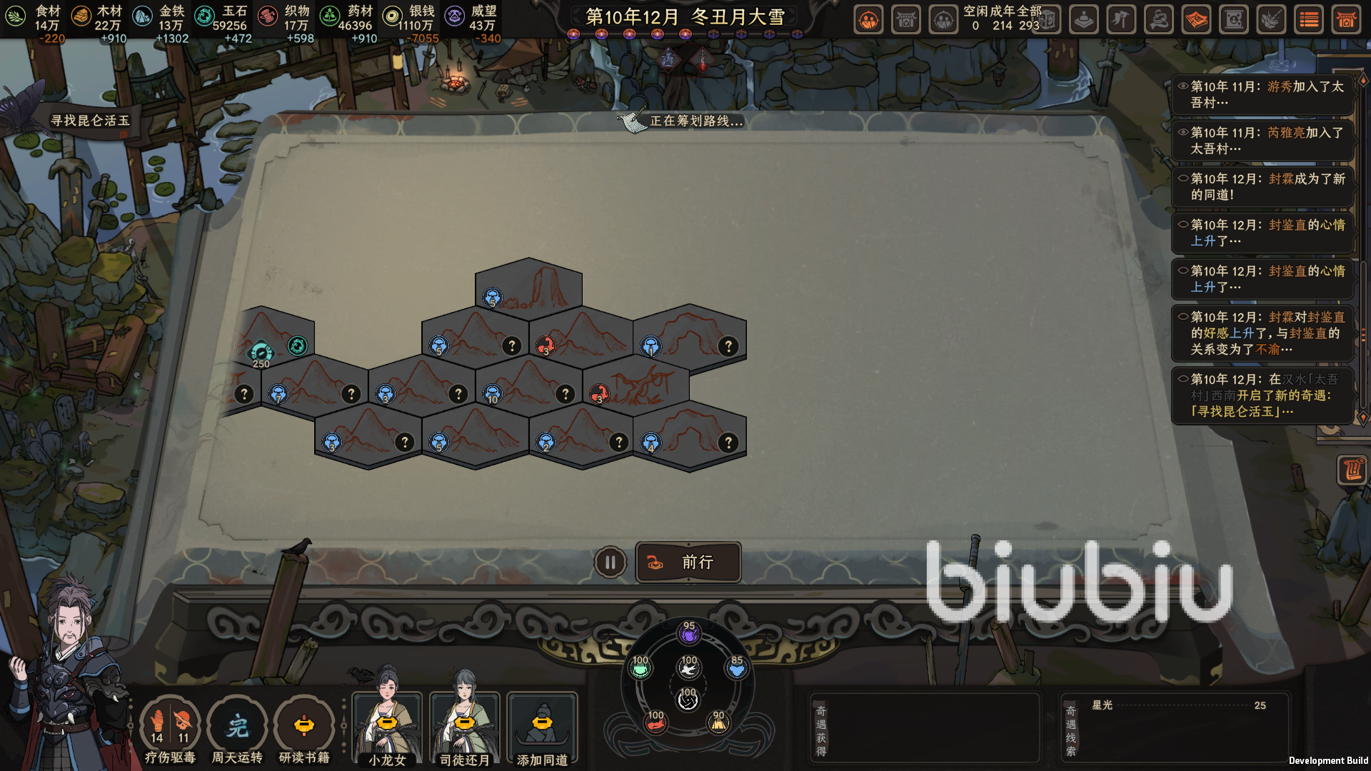 奇貨齋和百草堂現(xiàn)在可以直接去大城市的產(chǎn)業(yè)界面找到,不需要再滿地圖的找商隊(duì)了,購(gòu)買(mǎi)好補(bǔ)給品之后,我們進(jìn)入奇遇,這個(gè)奇遇要求我們的佛學(xué)資質(zhì)較高,有些地方佛學(xué)都是140起步,如果沒(méi)有佛學(xué)資質(zhì)可以去找文山書(shū)海閣購(gòu)買(mǎi)然后看書(shū),資質(zhì)不夠的話,沒(méi)辦法吃到所有收益,這些格子給的道具基本都是四品以上,非常適合那些種田流玩家。