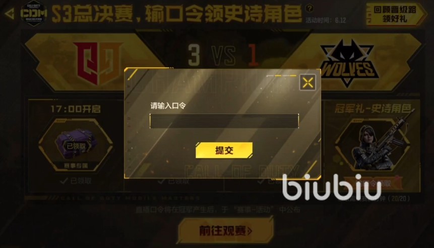 玩家們打開(kāi)活動(dòng)頁(yè)面,找到冠軍活動(dòng),在他的旁邊有一個(gè)口令碼輸入中心,點(diǎn)擊進(jìn)入把口令碼輸入進(jìn)去就可以領(lǐng)取啦。